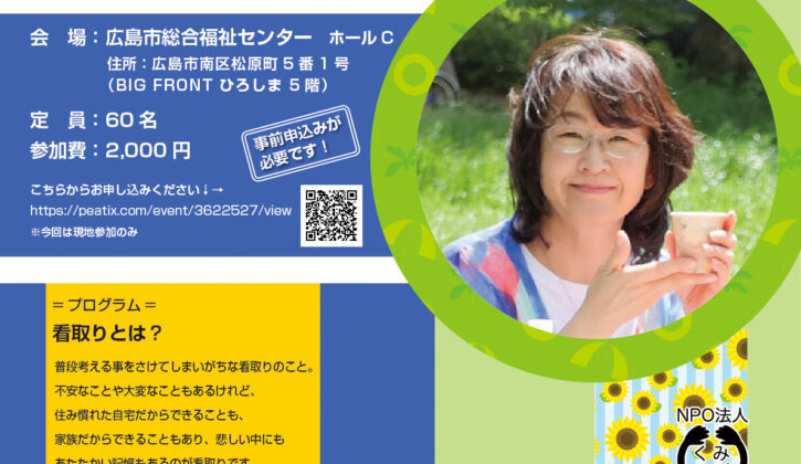 ◆終了しました◆ 第57回〈暮しの中の看取り〉準備講座 =最期まで輝いて暮らすために= 看取りとは? ~住み慣れた自宅で 看 … 続きを読む 2023年8月27日 第57回〈暮らしの中の看取り〉準備講座