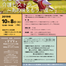 ◆終了しました◆ 2019年10月8日 第3回介護レストラン 開催決定! 介護レストランに参加したい方、お手伝いしてくださるボランティア…